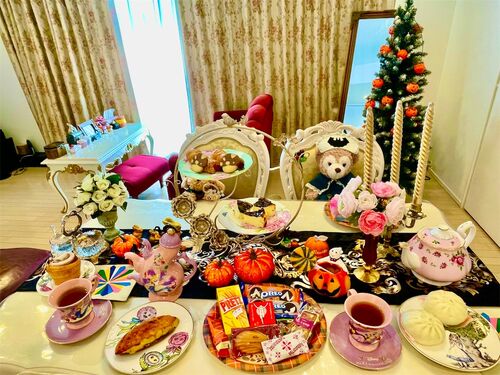 お友達が来てくれたのでハロウィーンパーティーをしました✨部屋は9月から既にハロウィーン仕様でした テーブルが賑やかに✨お菓子がたくさん 今年はシェリーメイとシャネルちゃん(犬のぬいぐるみ )も参加‼️ 右下はお友達のケーキ酸味があって私の好みの味い…